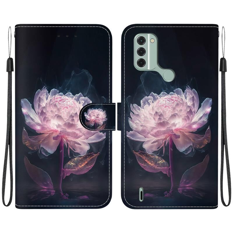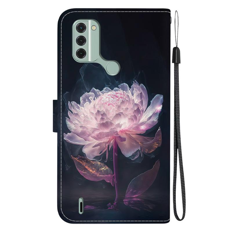 Θήκη τηλεφώνου Nokia C31 με κρυστάλλινη υφή, πολύχρωμο σχέδιο από δέρμα (Μωβ Παιώνια)