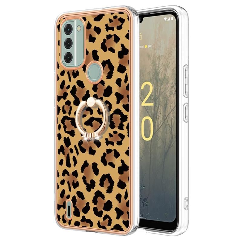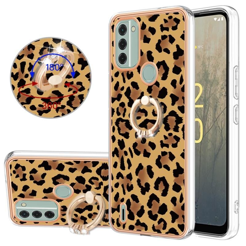 Θήκη τηλεφώνου για Nokia C31 με ηλεκτρολυτική επιμετάλλωση, διπλής όψης IMD με δακτύλιο στήριξης (εκτύπωση λεοπάρδαλης)