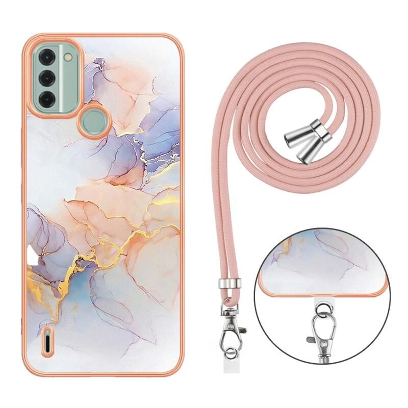 Θήκη τηλεφώνου Nokia C31 Επιμετάλλωση IMD TPU με Λουρί (Λευκό Μάρμαρο)