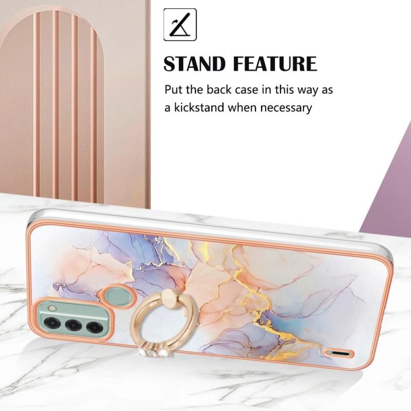 Θήκη κινητού τηλεφώνου Nokia C31 Επιμετάλλωση IMD TPU με Δαχτυλίδι (Λευκό Μάρμαρο)
