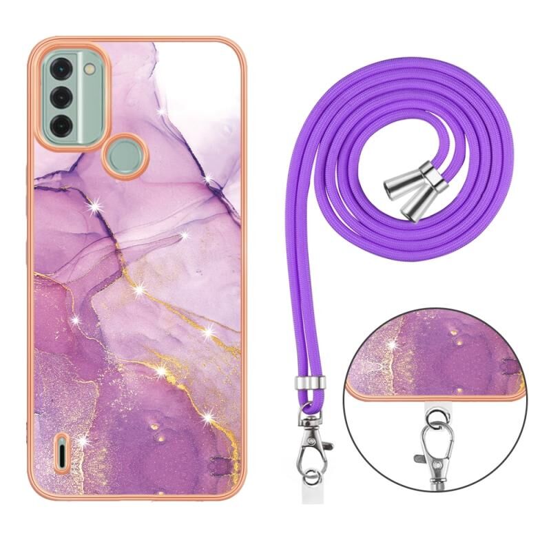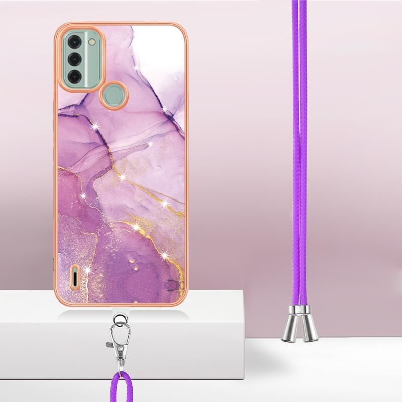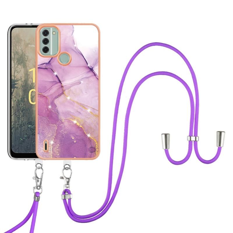 Θήκη τηλεφώνου για Nokia C31 με ηλεκτρολυτική επίστρωση, σχέδιο μάρμαρου, διπλής όψης IMD με κορδόνι (Μωβ 001)