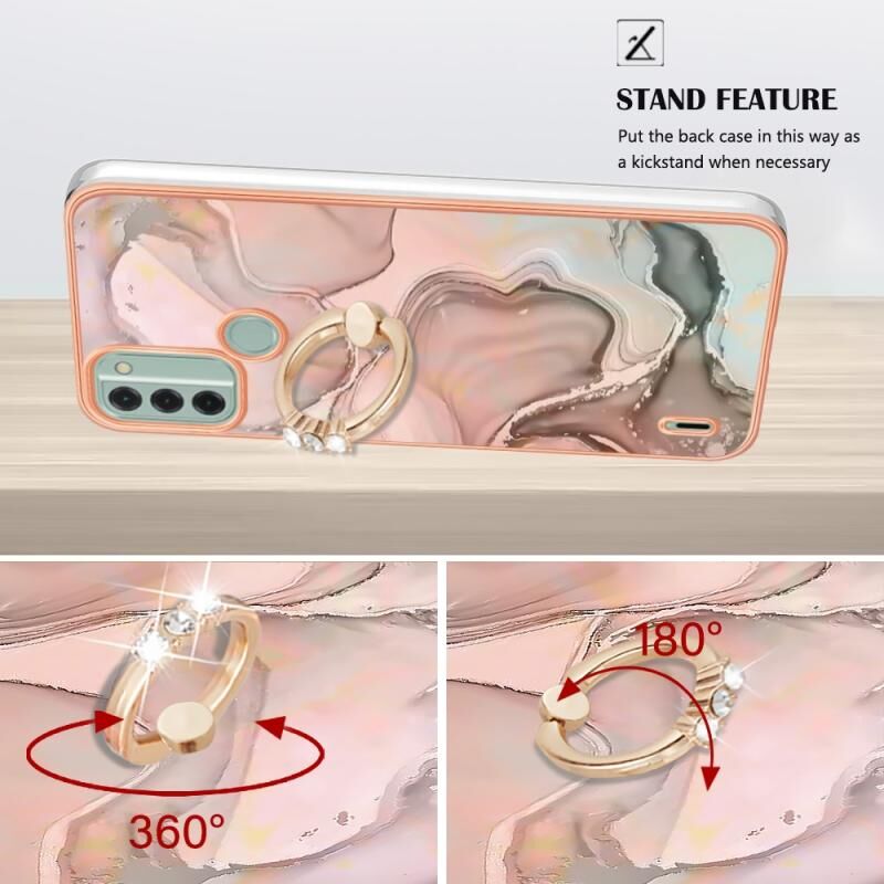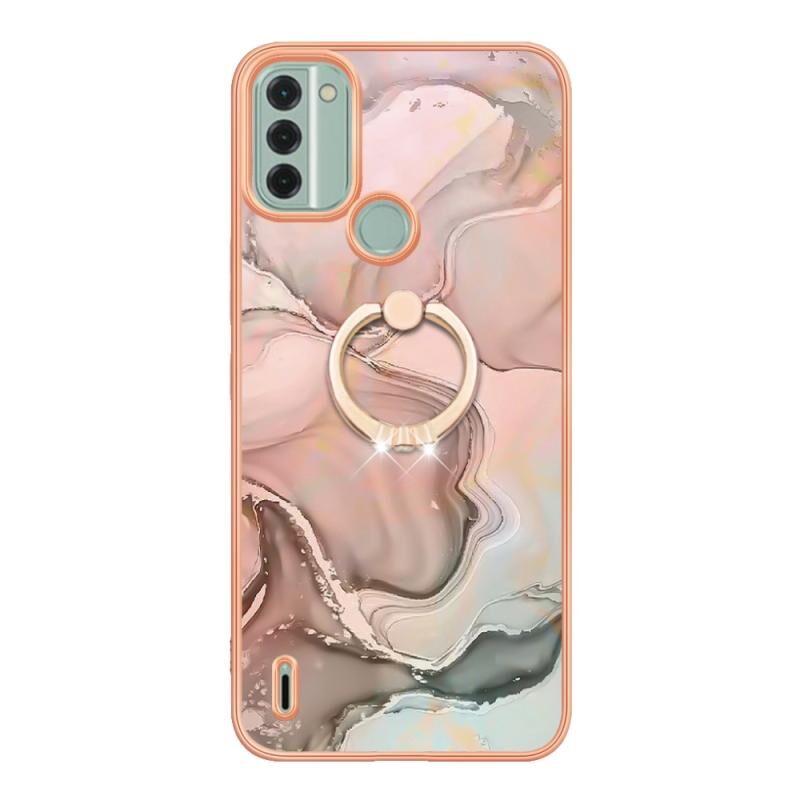 Θήκη τηλεφώνου για Nokia C31 με ηλεκτρολυτική επίστρωση, σχέδιο μάρμαρου, διπλής όψης IMD με δαχτυλίδι (Μωβ 016)