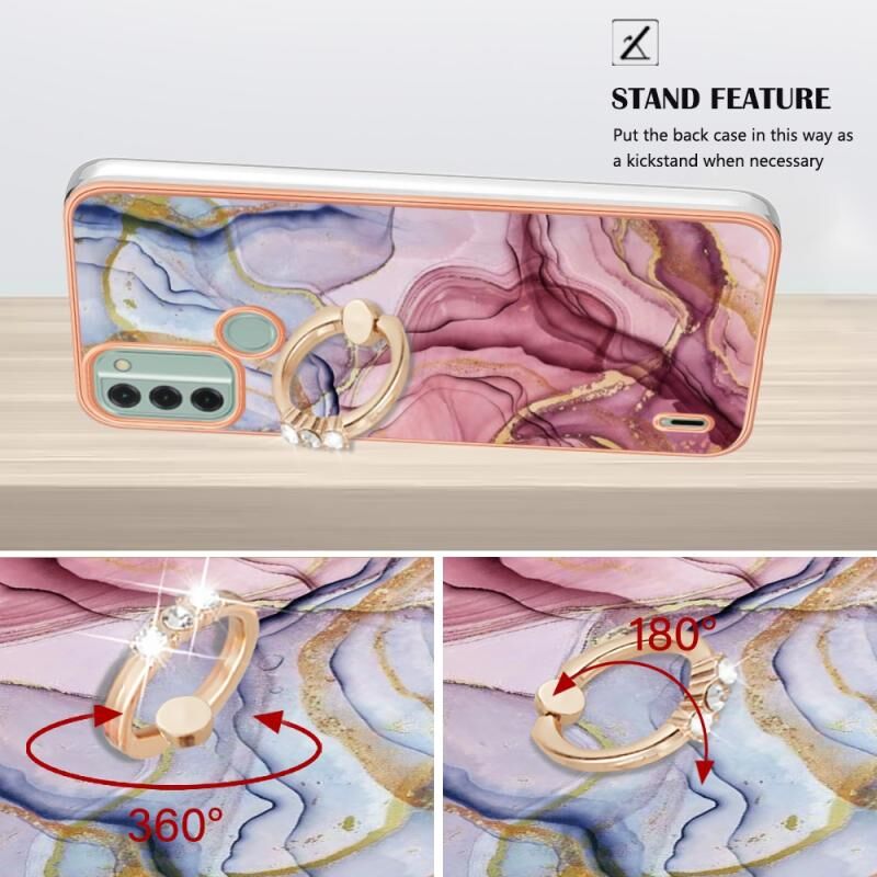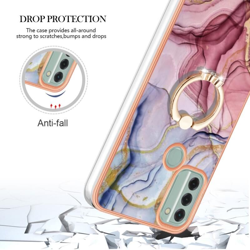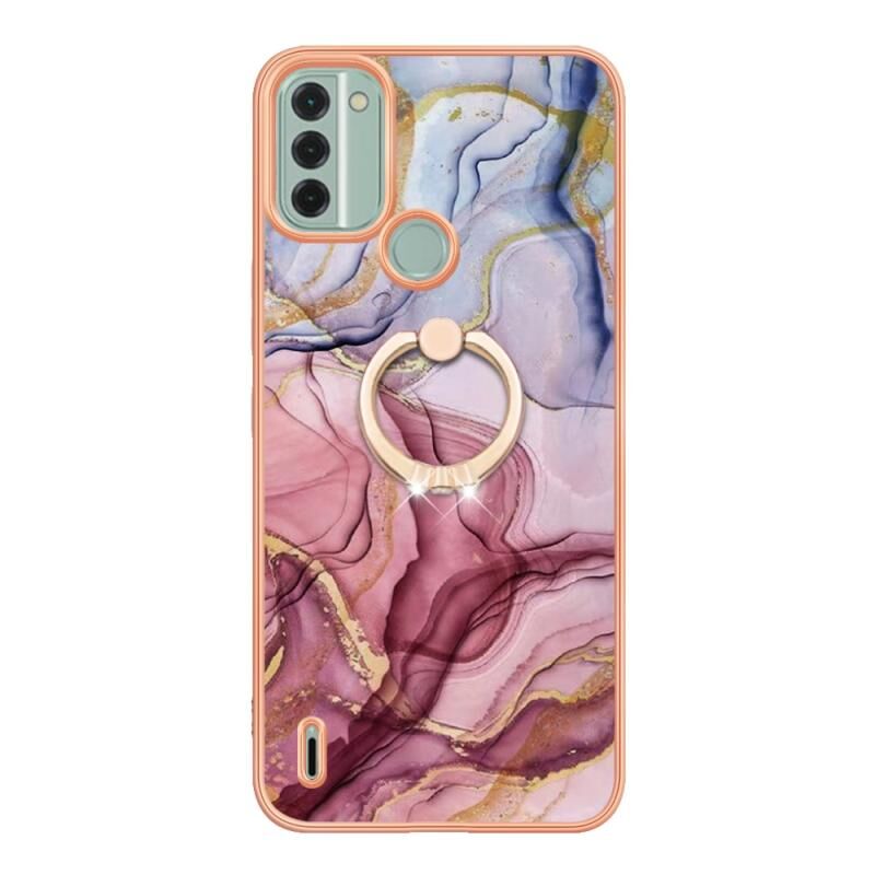 Θήκη τηλεφώνου για Nokia C31 με ηλεκτρολυτική επίστρωση, σχέδιο μάρμαρου, διπλής όψης IMD με δαχτυλίδι (Μωβ 016)