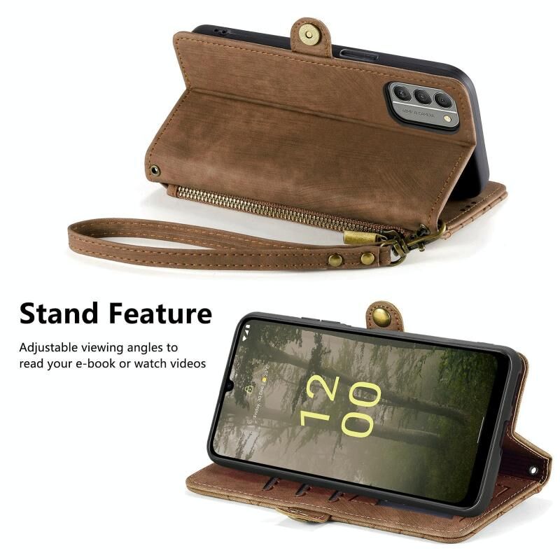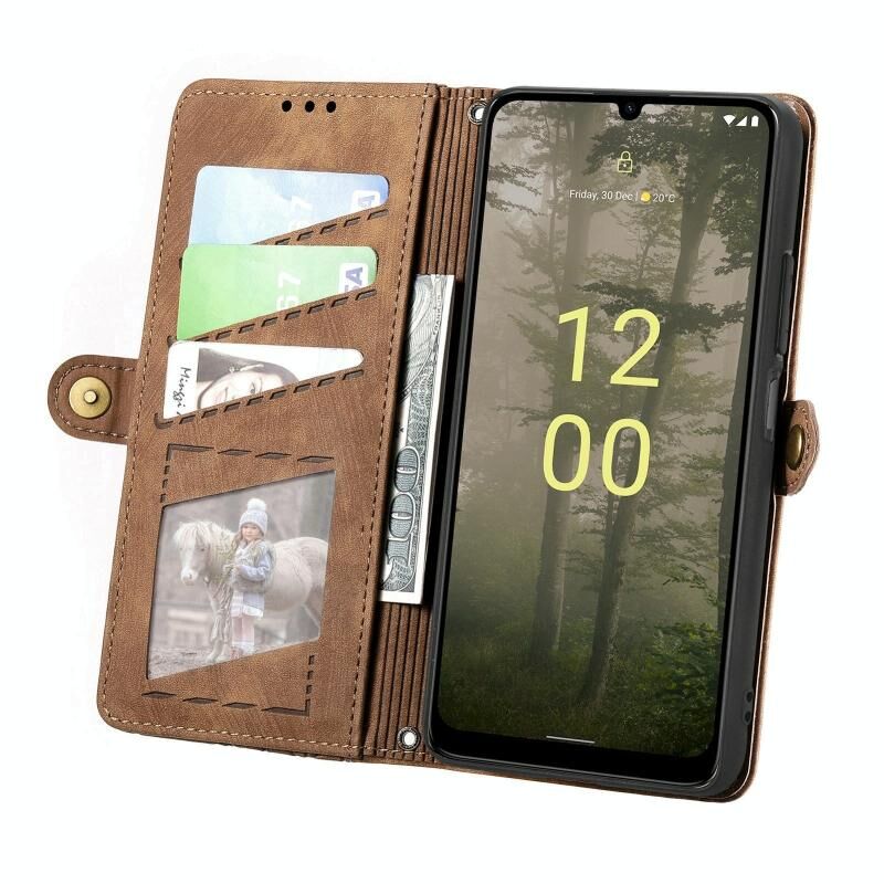 Για Nokia C31 Γεωμετρική φερμουάρ πορτοφόλι πλευρά πόρπη δερμάτινη θήκη τηλεφώνου (καφέ)