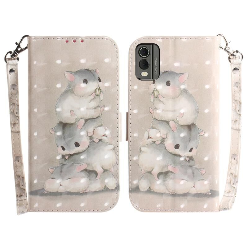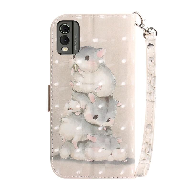 Θήκη τηλεφώνου δερμάτινη, οριζόντια, αναδιπλούμενη, με έγχρωμα 3D σχέδια (σκίουροι) για Nokia C32.