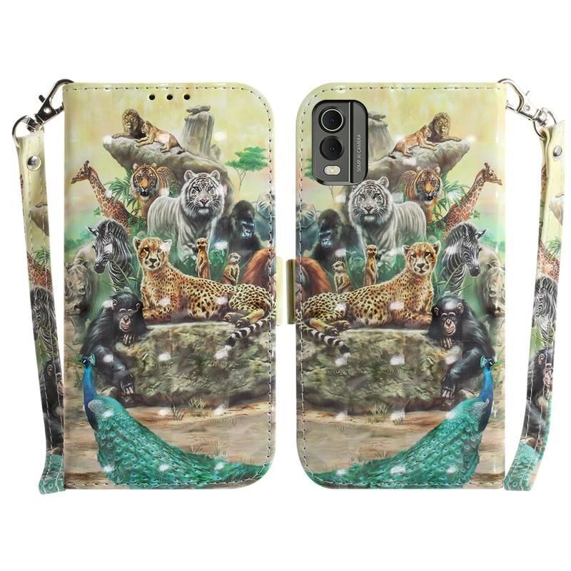 Θήκη τηλεφώνου δερμάτινη, οριζόντια, αναδιπλούμενη, με έγχρωμα 3D σχέδια για Nokia C32 (Ζωολογικός κήπος)