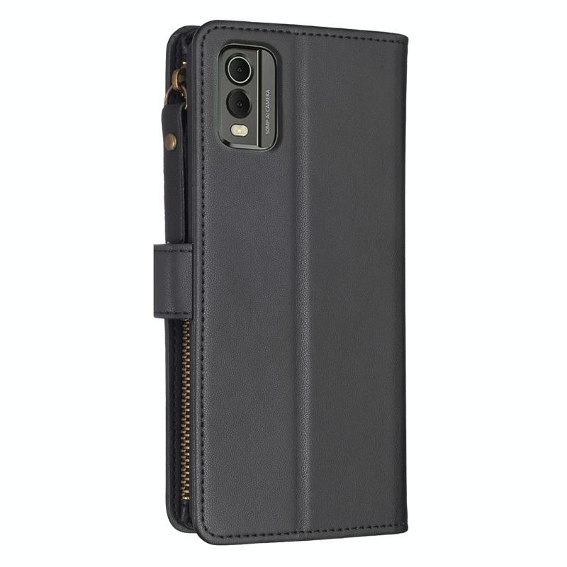Θήκη τηλεφώνου για Nokia C32, 9 θέσεις για κάρτες, δερμάτινη θήκη τύπου πορτοφολιού με φερμουάρ (ανοιχτό μωβ)