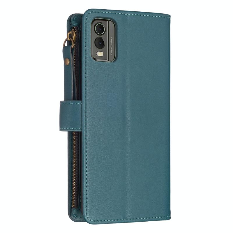 Θήκη τηλεφώνου για Nokia C32, 9 θέσεις για κάρτες, δερμάτινη θήκη τύπου πορτοφολιού με φερμουάρ (ανοιχτό μωβ)