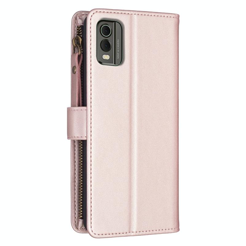 Θήκη τηλεφώνου για Nokia C32, 9 θέσεις για κάρτες, δερμάτινη θήκη τύπου πορτοφολιού με φερμουάρ (ανοιχτό μωβ)