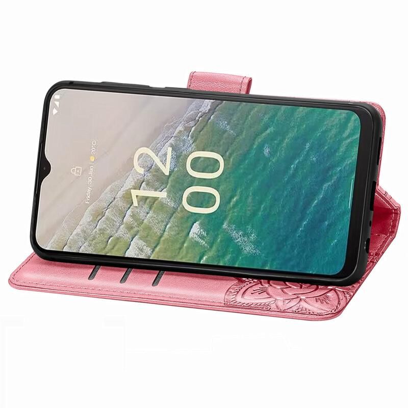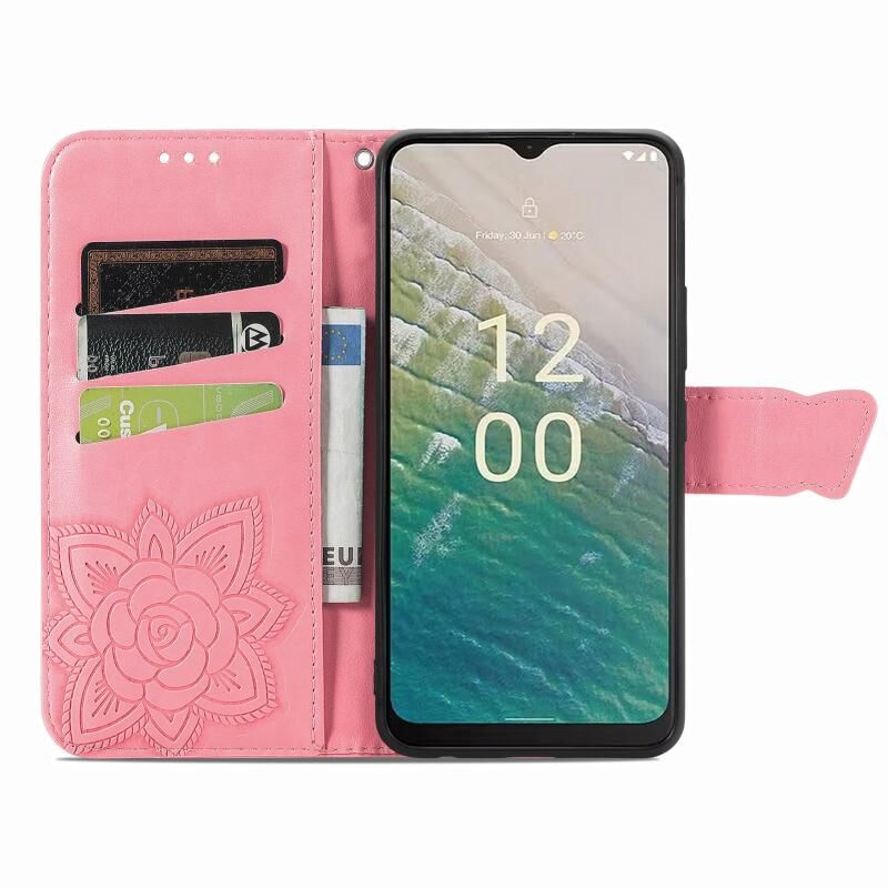 Θήκη τηλεφώνου από δέρμα με ανάγλυφο σχέδιο πεταλούδας και λουλουδιών για Nokia C32 (Μπλε)