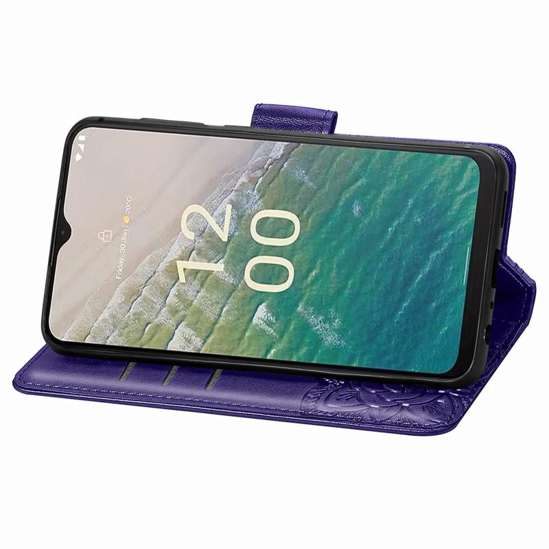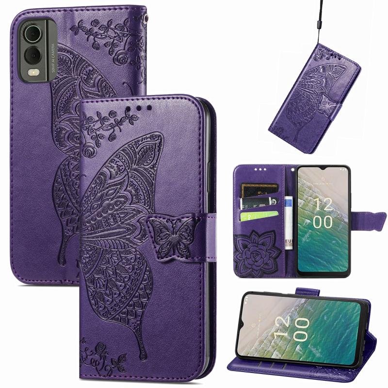 For Nokia C32 Butterfly Love Flower Embossed Leather Phone Case(Purple)