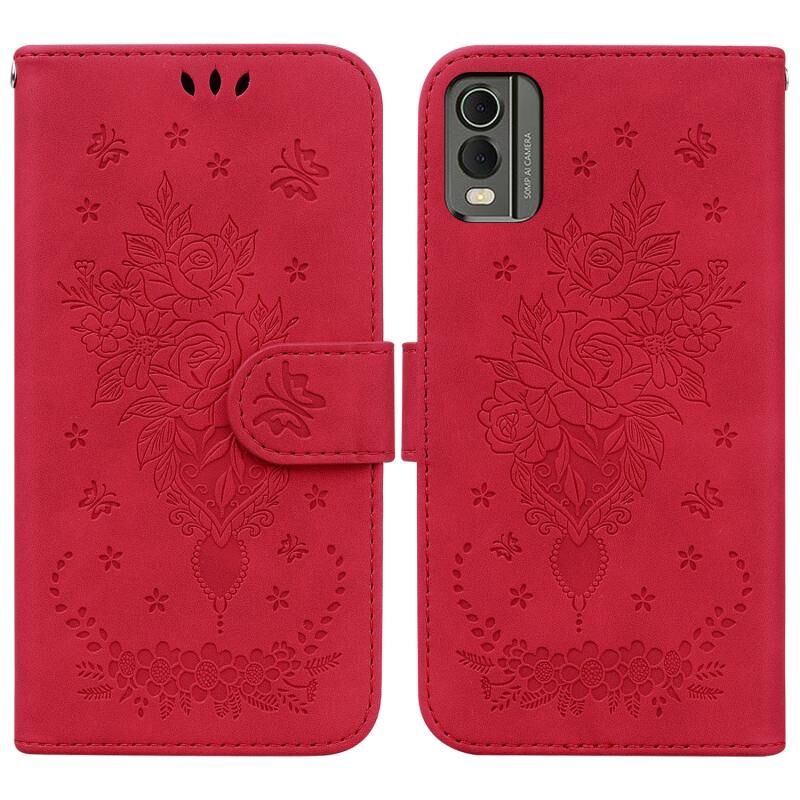 Για Nokia C32 Πεταλούδα Rose ανάγλυφη δερμάτινη θήκη τηλεφώνου (κόκκινο)