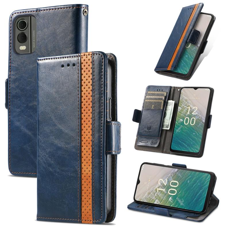 For Nokia C32 CaseNeo Splicing Dual Magnetic Buckle Leather Phone Case(Blue)