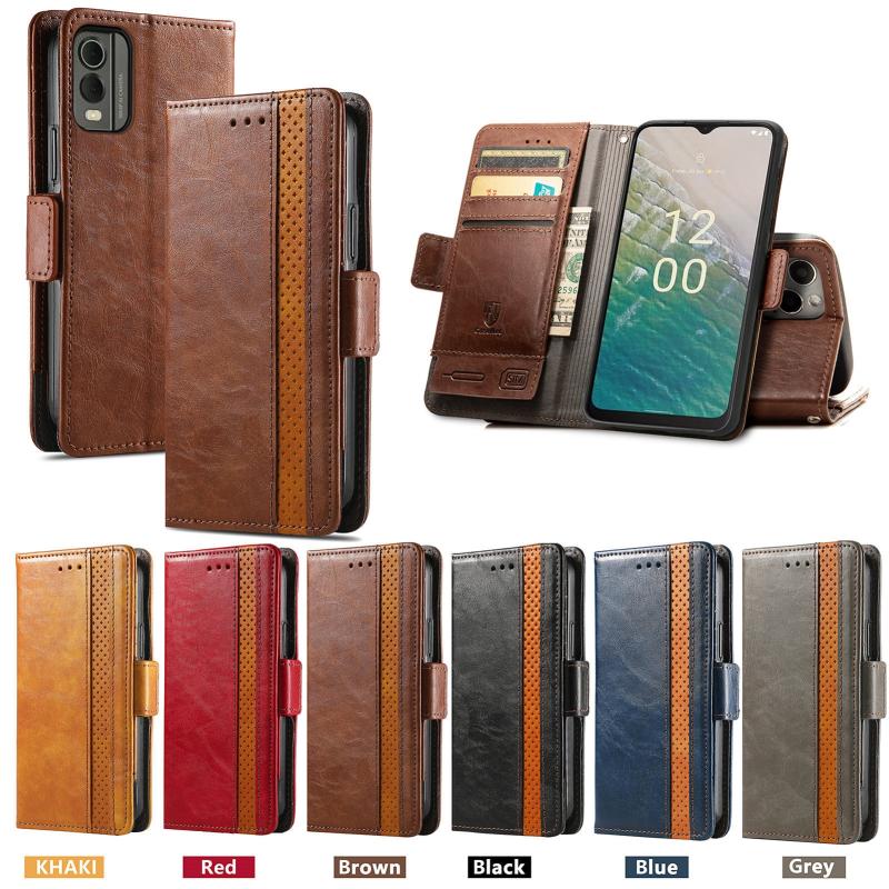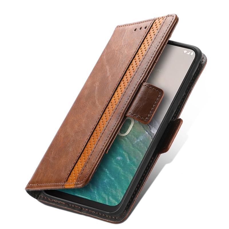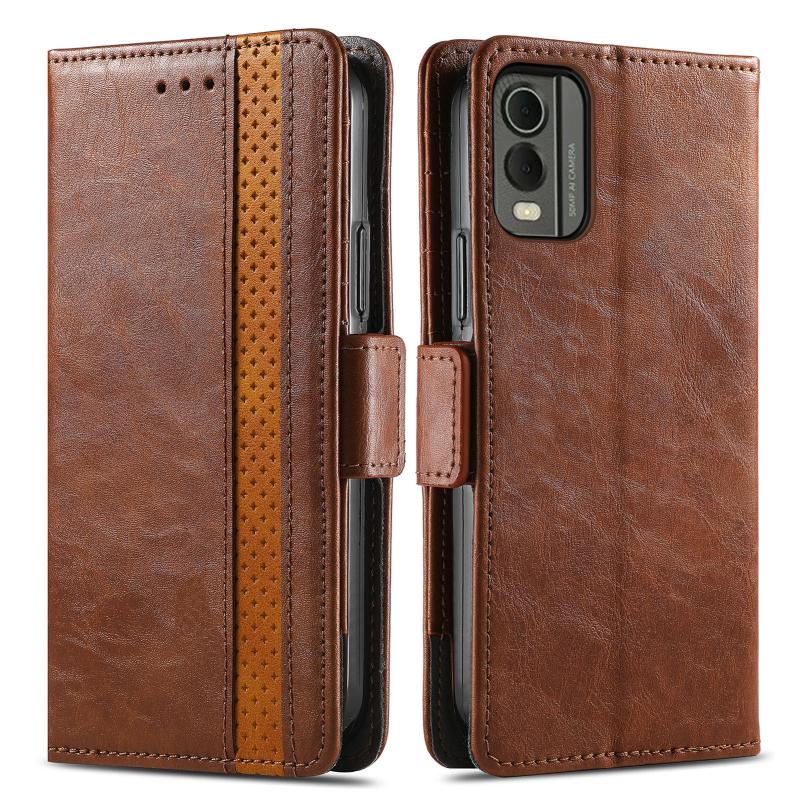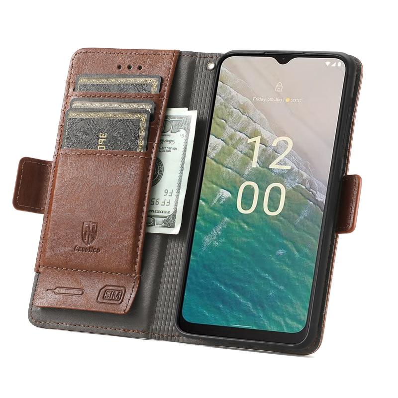 For Nokia C32 CaseNeo Splicing Dual Magnetic Buckle Leather Phone Case(Brown)