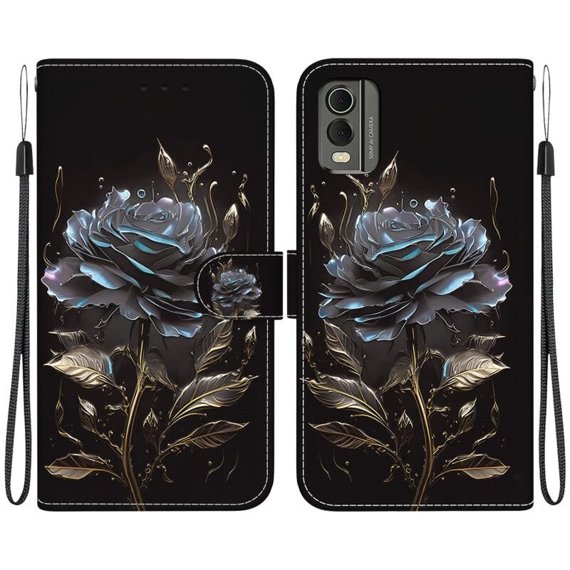 Θήκη τηλεφώνου Nokia C32 Κρυστάλλινη Υφή, Χρωματιστό Σχέδιο Δέρματος (Μωβ Παιώνια)