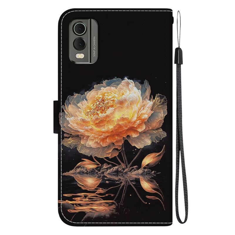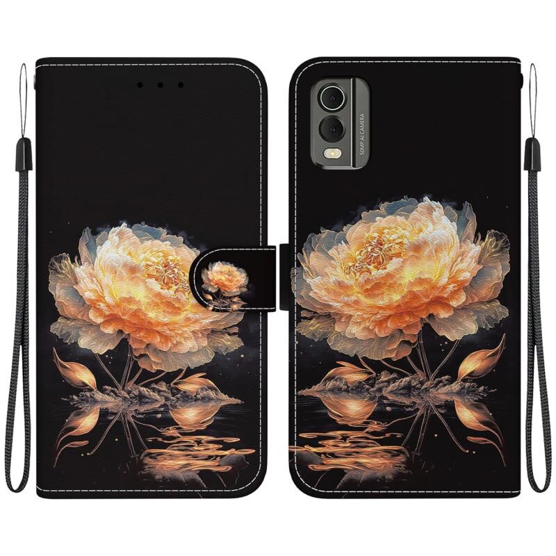 Θήκη τηλεφώνου Nokia C32 Κρυστάλλινη Υφή, Χρωματιστό Σχέδιο Δέρματος (Μωβ Παιώνια)