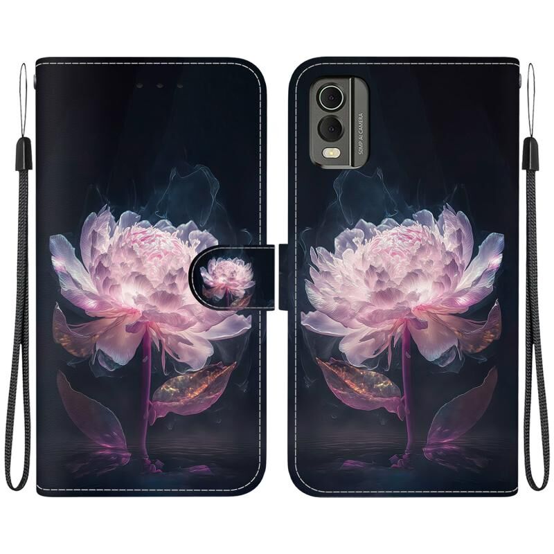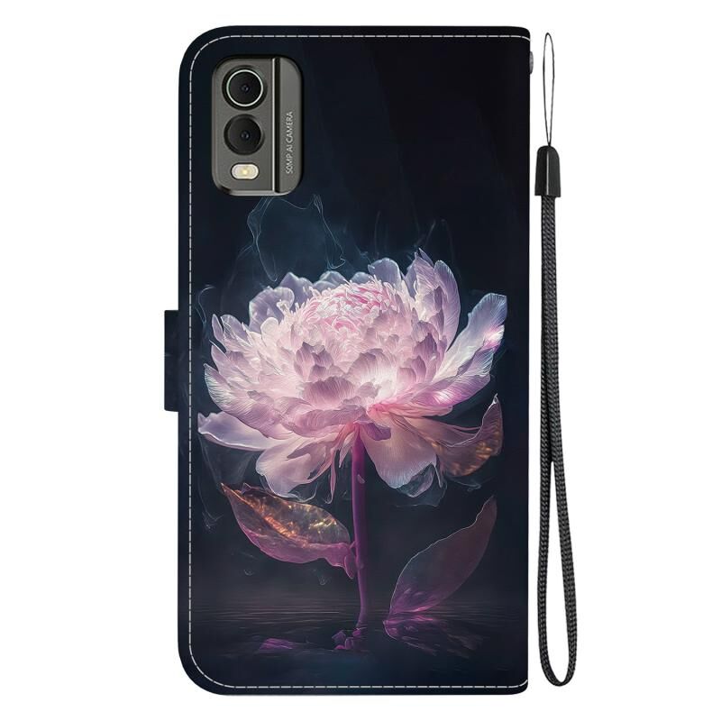 Θήκη τηλεφώνου Nokia C32 Κρυστάλλινη Υφή, Χρωματιστό Σχέδιο Δέρματος (Μωβ Παιώνια)