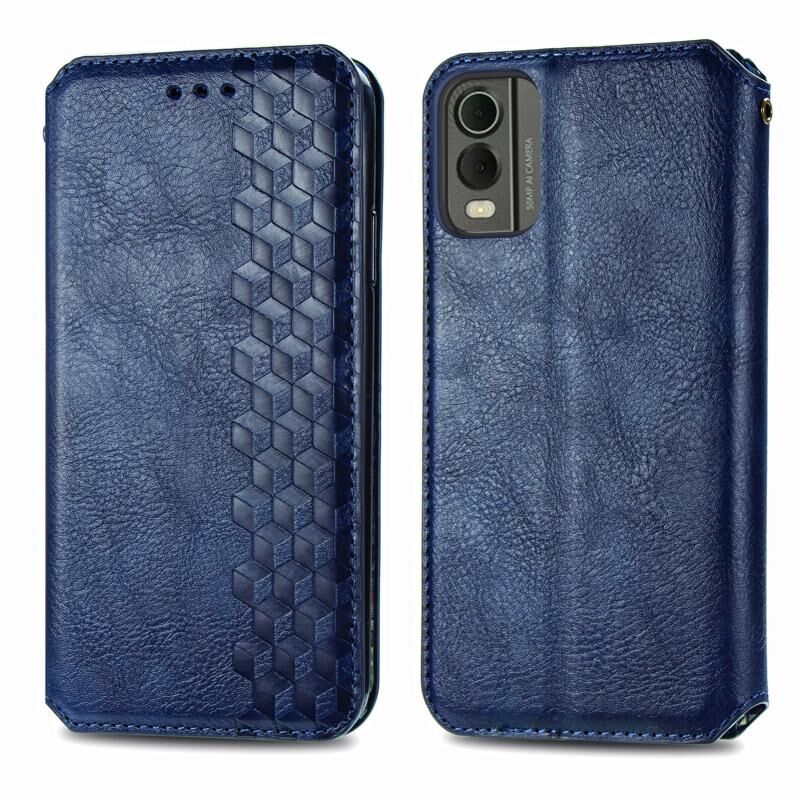 Για το Nokia C32 Cubic Grid Pressed μαγνητική δερμάτινη θήκη τηλεφώνου (μπλε)