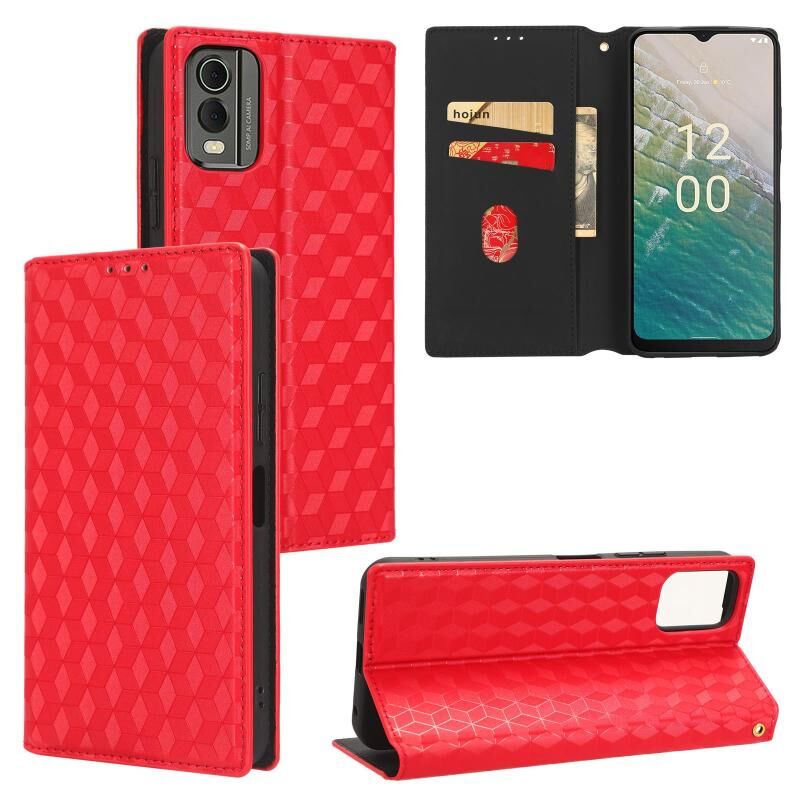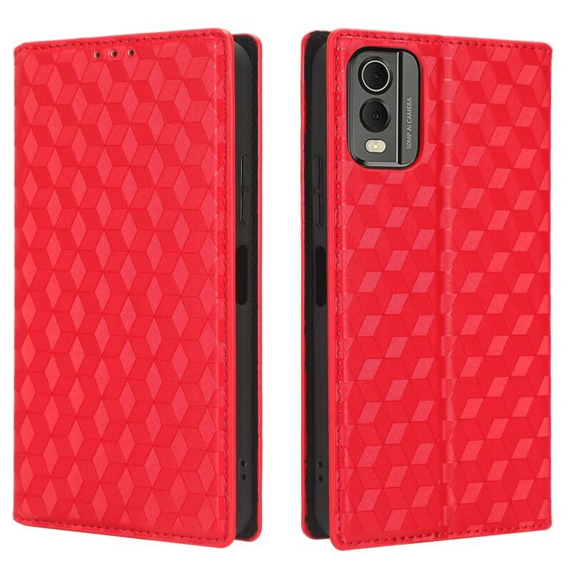 For Nokia C32 Cubic Grid Texture Flip Leather Phone Case(Red)
