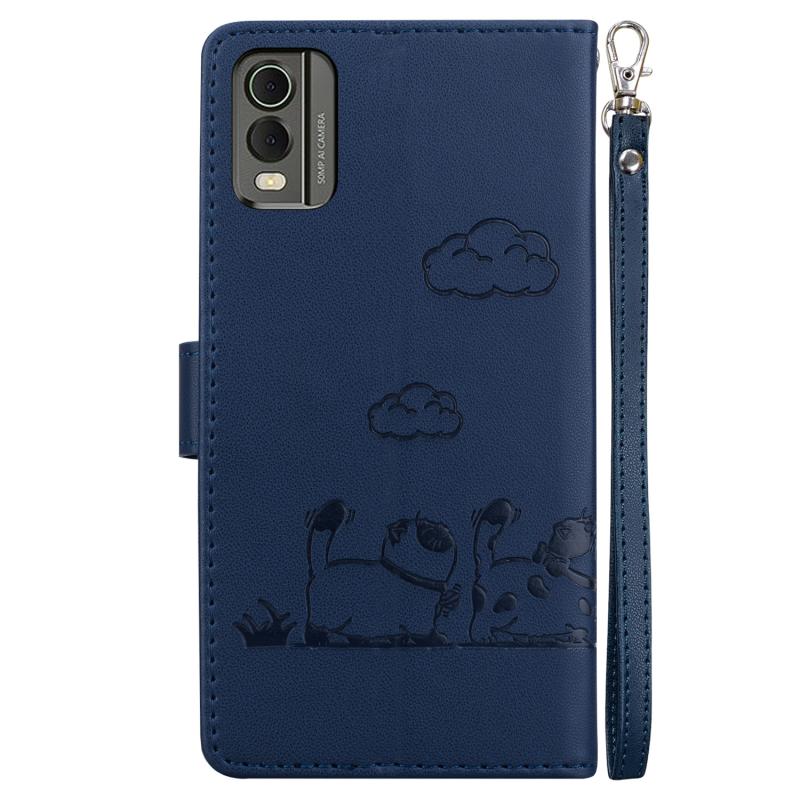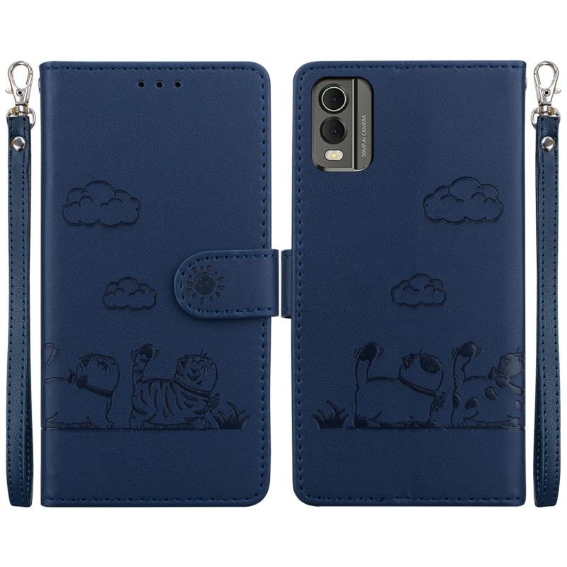 For Nokia C32 Cute Cats RFID Leather Phone Case(Blue)