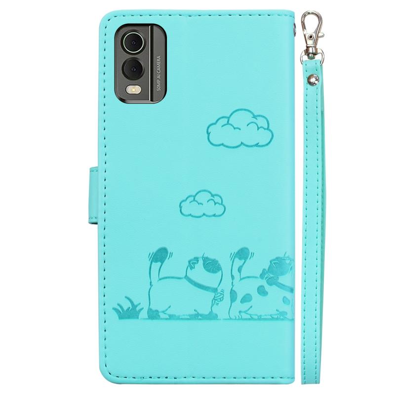 For Nokia C32 Cute Cats RFID Leather Phone Case(Green)