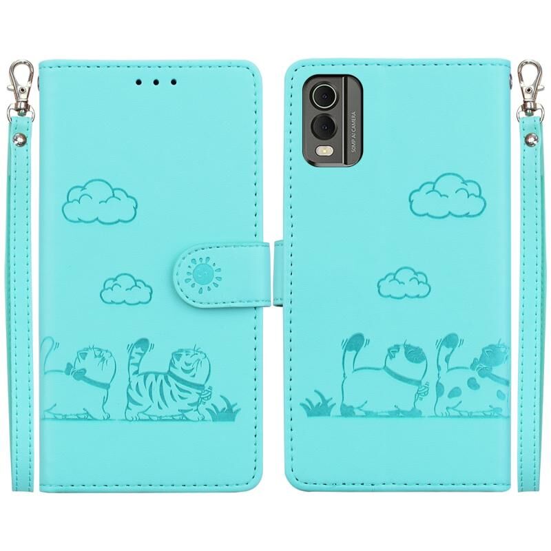 Θήκη τηλεφώνου από δέρμα RFID για Nokia C32, χαριτωμένες γάτες (Χρυσό ροζ)