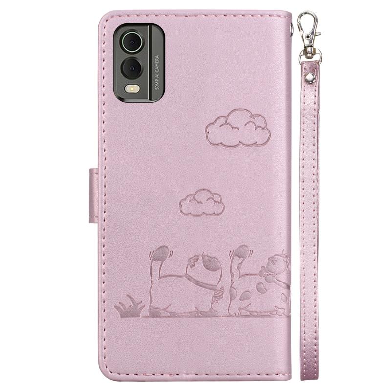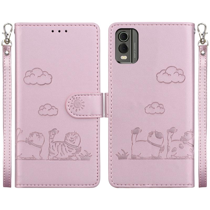 For Nokia C32 Cute Cats RFID Leather Phone Case(Rose Gold)