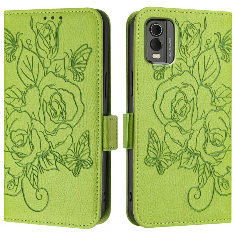 For Nokia C32 Embossed Rose RFID Anti-theft Leather Phone Case(Green)