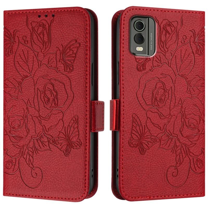For Nokia C32 Embossed Rose RFID Anti-theft Leather Phone Case(Red)