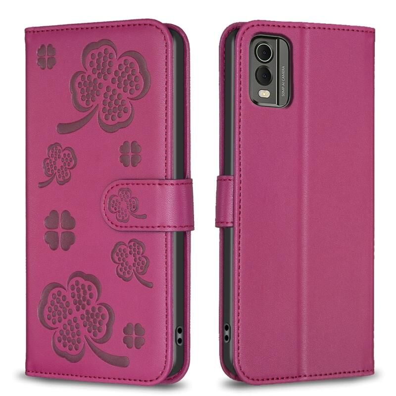 Για Nokia C32 τετράφυλλο ανάγλυφη δερμάτινη θήκη τηλεφώνου (ροζ κόκκινο)