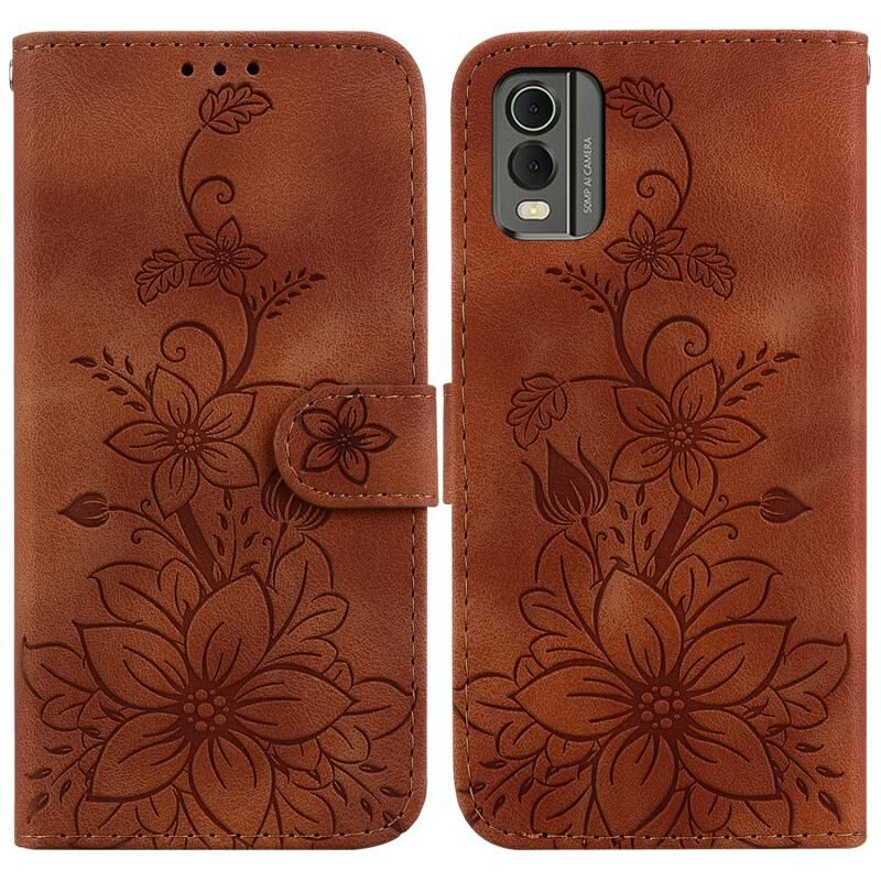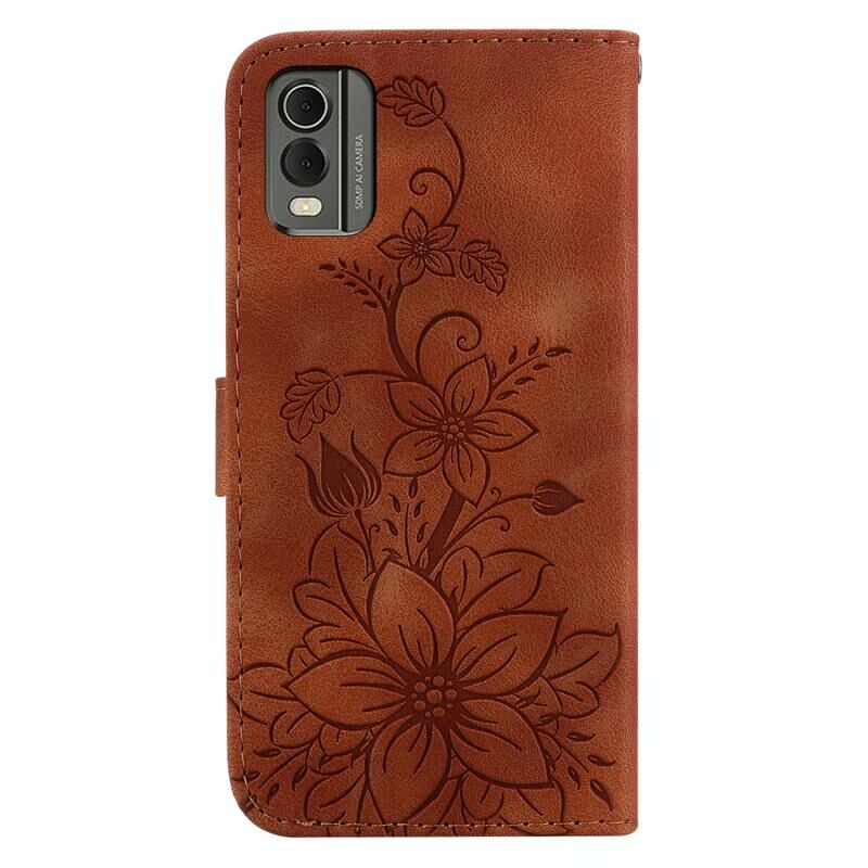 Για Nokia C32 Lily ανάγλυφη δερμάτινη θήκη τηλεφώνου (καφέ)