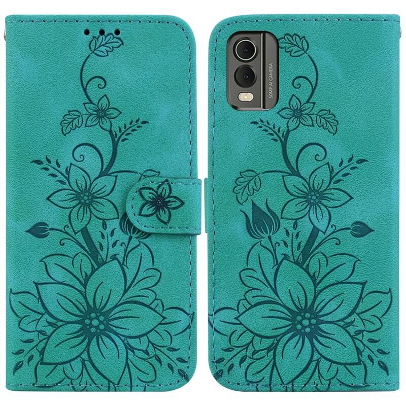 Για Nokia C32 Lily ανάγλυφη δερμάτινη θήκη τηλεφώνου (πράσινο)