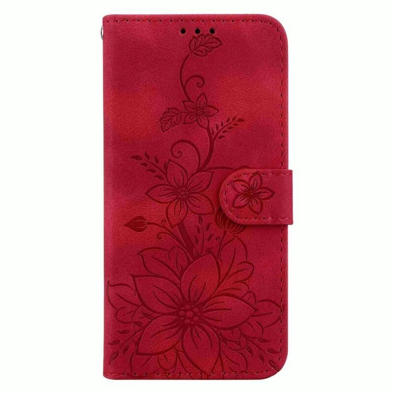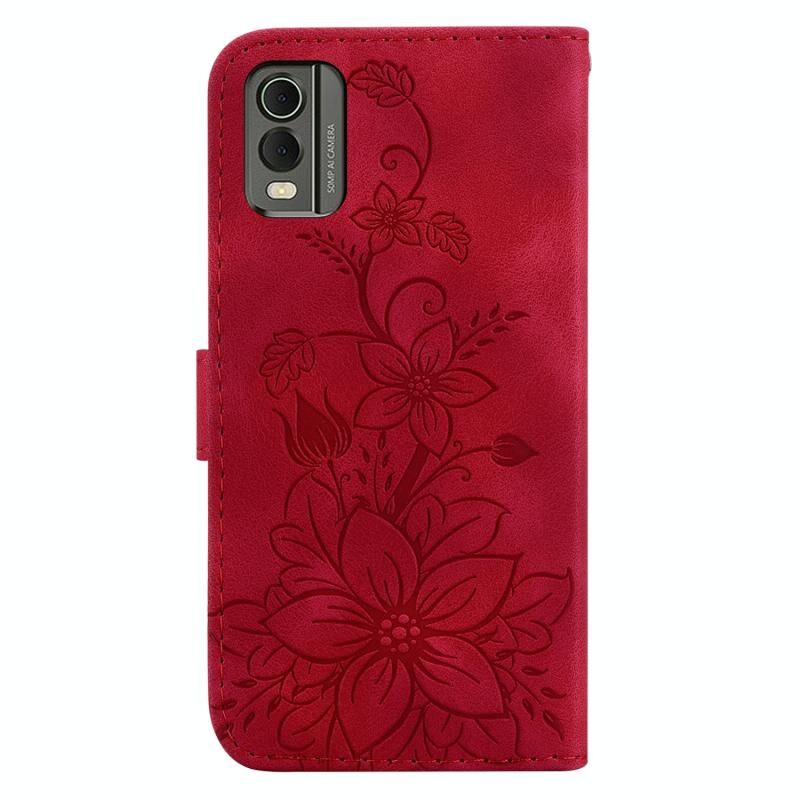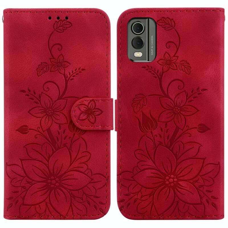 Για Nokia C32 Lily ανάγλυφη δερμάτινη θήκη τηλεφώνου (κόκκινο)