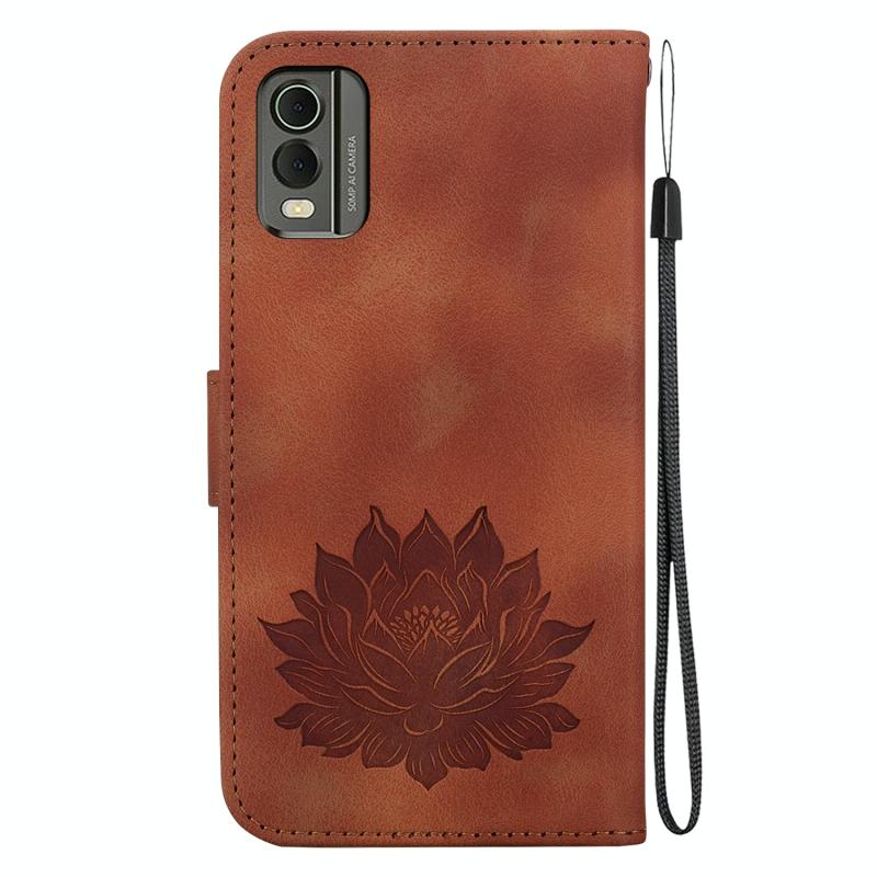 For Nokia C32 Lotus Embossed Leather Phone Case(Brown)