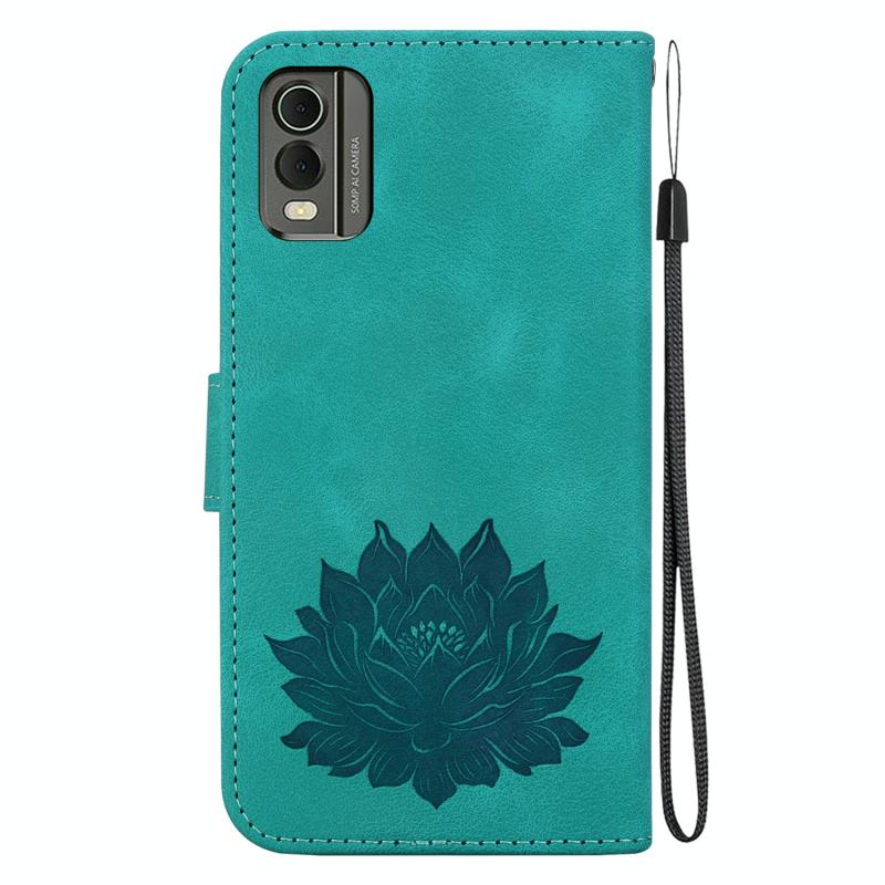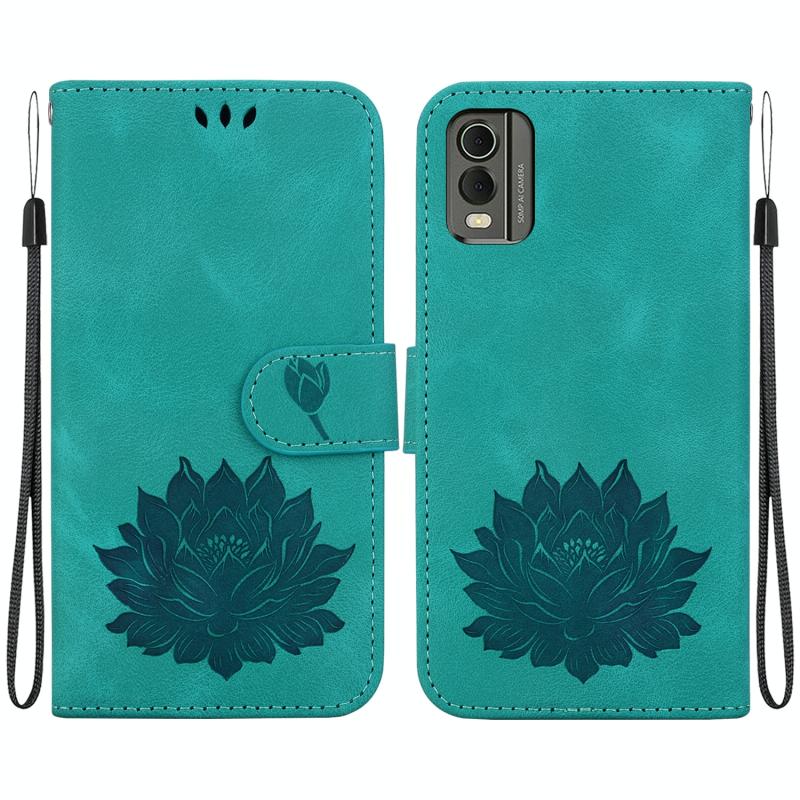 For Nokia C32 Lotus Embossed Leather Phone Case(Green)