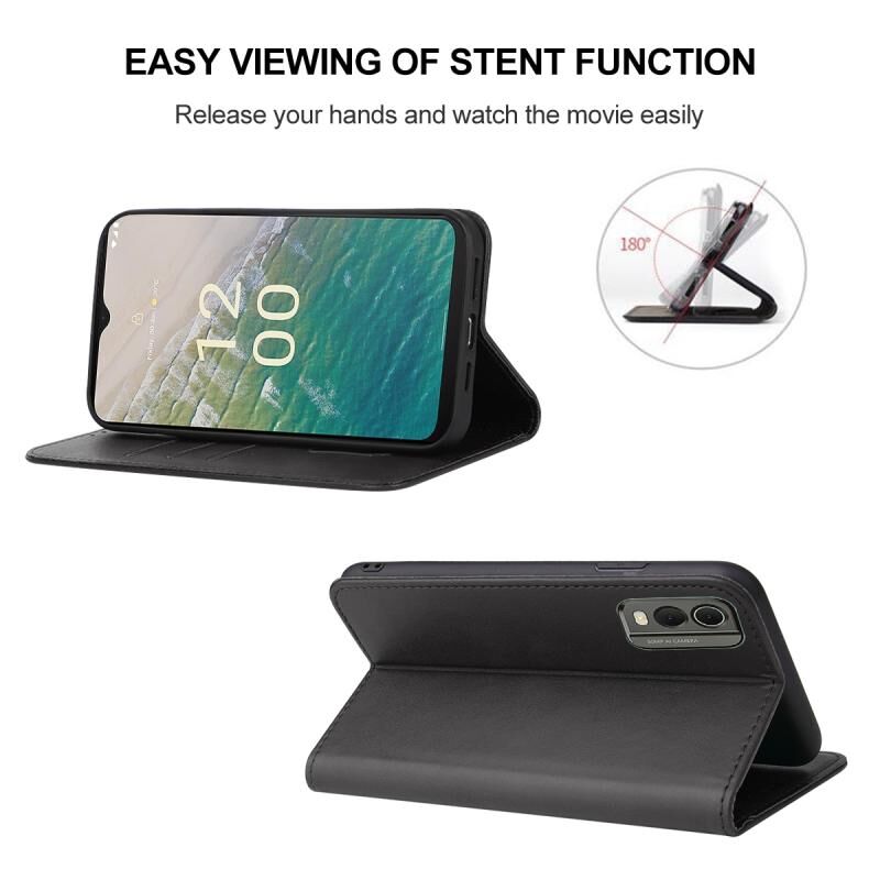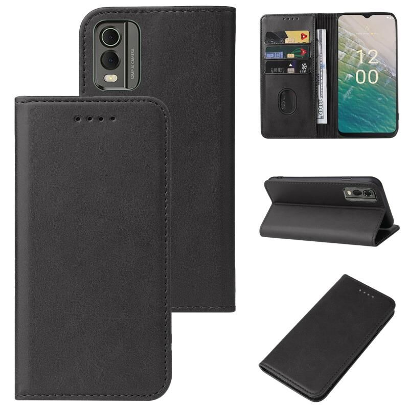 Για Nokia C32 Μαγνητικό κλείσιμο δερμάτινη θήκη τηλεφώνου (Μαύρο)