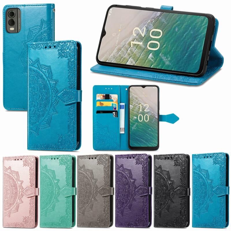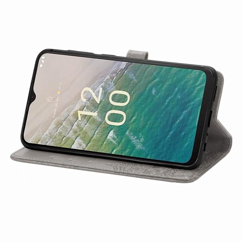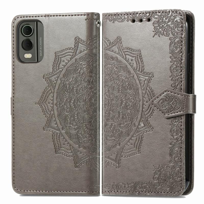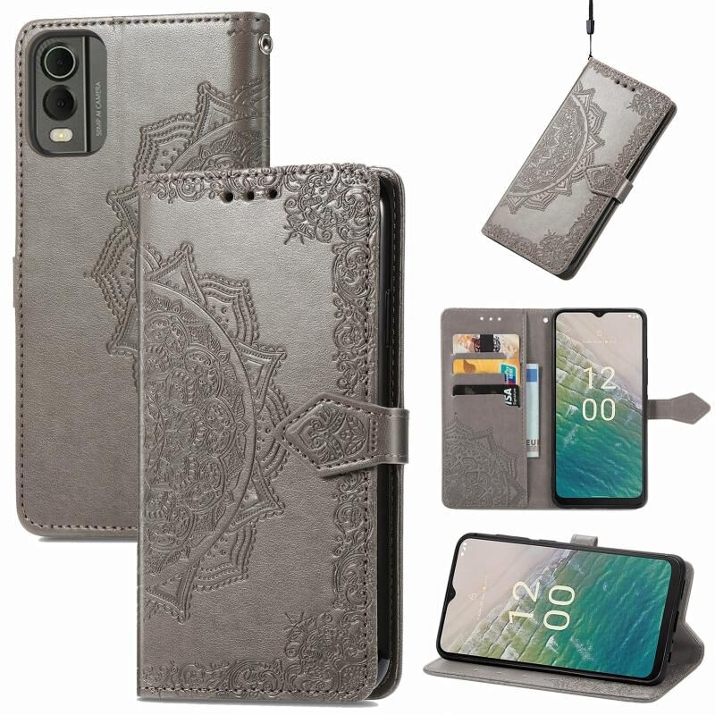 Για Nokia C32 Mandala λουλούδι ανάγλυφο δέρμα υπόθεση τηλεφώνου (γκρι)