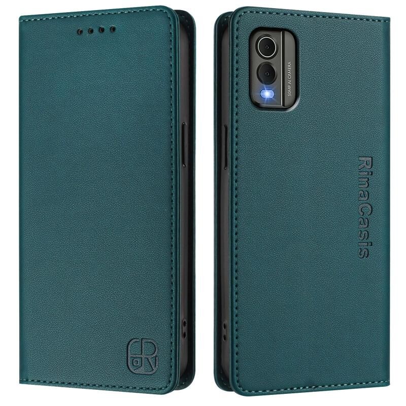 Θήκη τηλεφώνου από δέρμα με μαγνητική απορρόφηση και διπλή πτυχή για Nokia C32 RC01 (Μέντας Πράσινο)