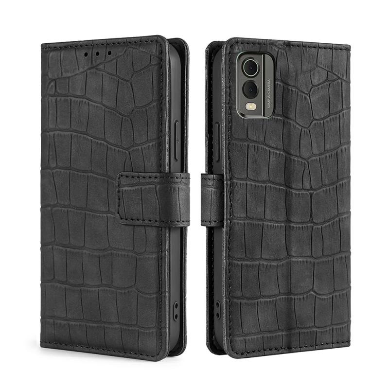For Nokia C32 Skin Feel Crocodile Magnetic Clasp Leather Phone Case(Black)
