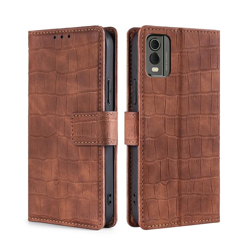 For Nokia C32 Skin Feel Crocodile Magnetic Clasp Leather Phone Case(Brown)