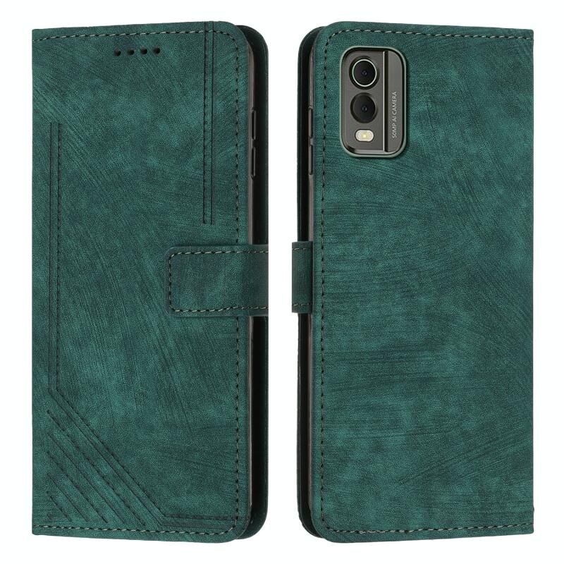 Για το Nokia C32 δέρμα αισθάνονται λωρίδα μοτίβο δερμάτινη θήκη τηλεφώνου με κορδόνι (πράσινο)