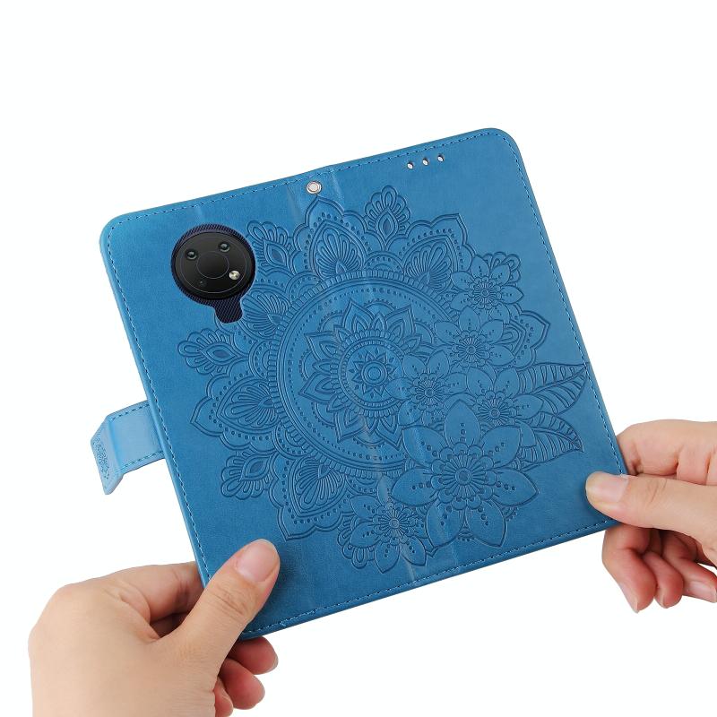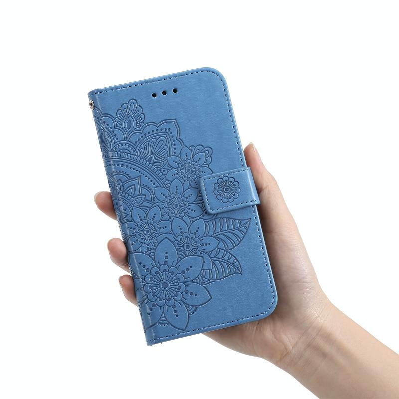 For Nokia G10 / G20 / 6.3 7-petal Flowers Embossing Pattern Horizontal Flip PU Leather Case with Holder & Card Slots & Wallet & Photo Frame(Blue)