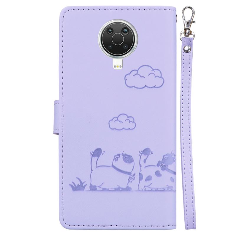 For Nokia G10 / G20 Cute Cats RFID Leather Phone Case(Purple)