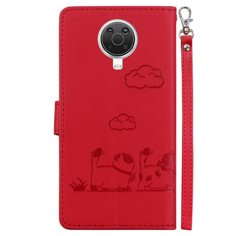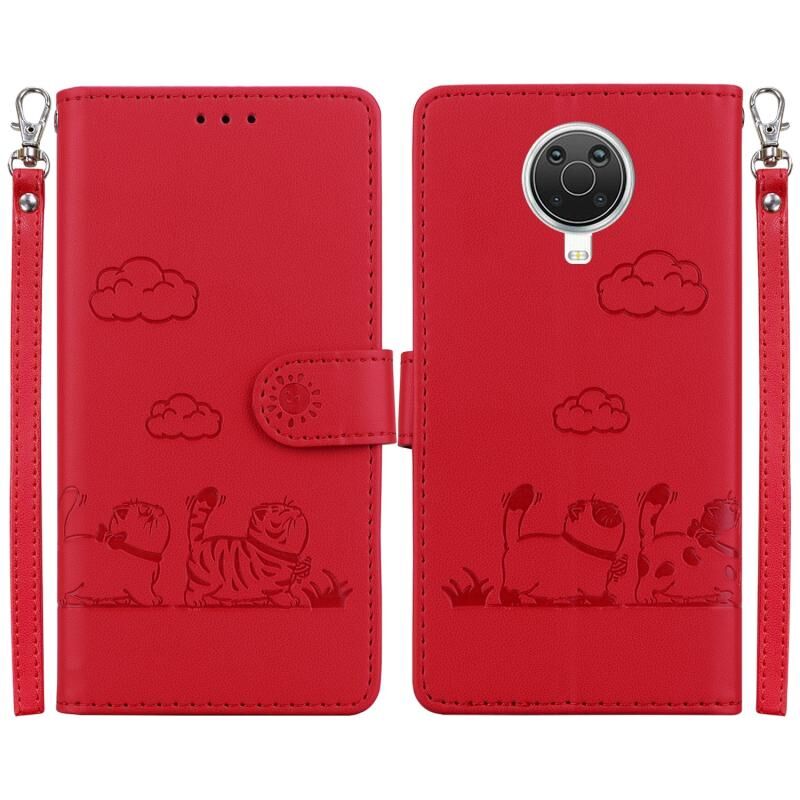 Θήκη τηλεφώνου από δέρμα με χαριτωμένες γάτες RFID για Nokia G10 / G20 (Χρυσό ροζ)