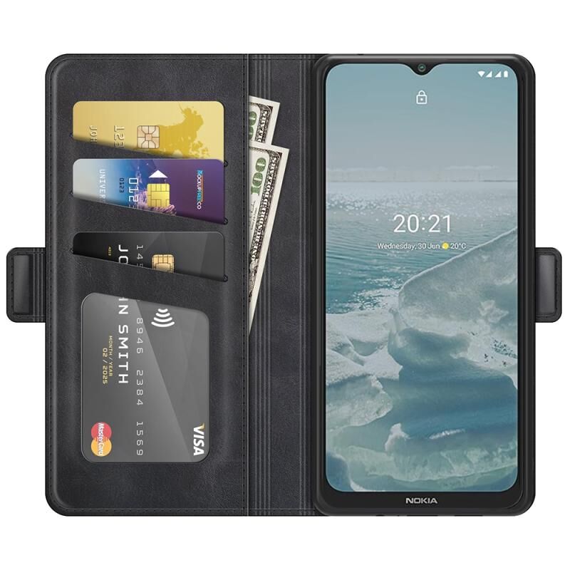 Για Nokia G10/G20 Διπλής όψης μαγνητική πόρπη οριζόντια Flip δερμάτινη θήκη με θήκη & υποδοχές καρτών & πορτοφόλι (Μαύρο)