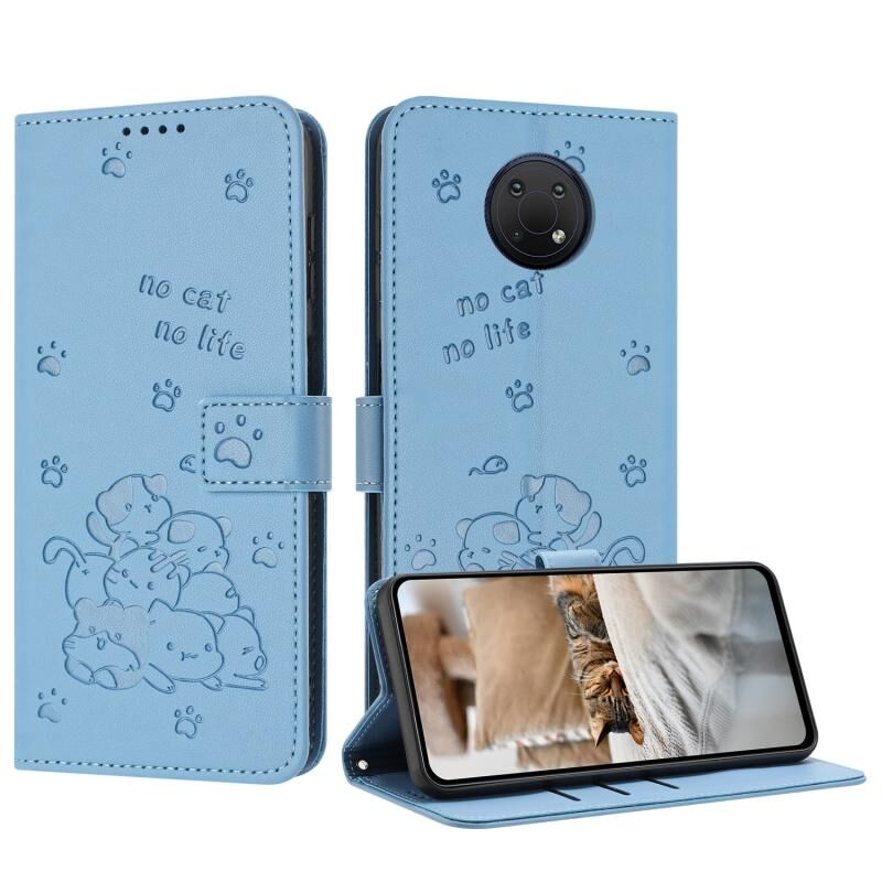 Θήκη δέρματος τηλεφώνου με ανάγλυφο γατάκι για Nokia G10 / G20 / G300 με κορδόνι (Μωβ)