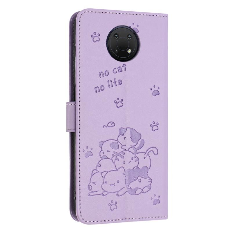 Θήκη δέρματος τηλεφώνου με ανάγλυφο γατάκι για Nokia G10 / G20 / G300 με κορδόνι (Μωβ)