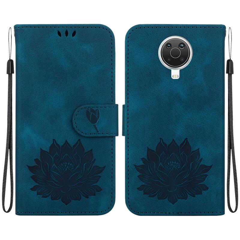 For Nokia G10 / G20 Lotus Embossed Leather Phone Case(Dark Blue)