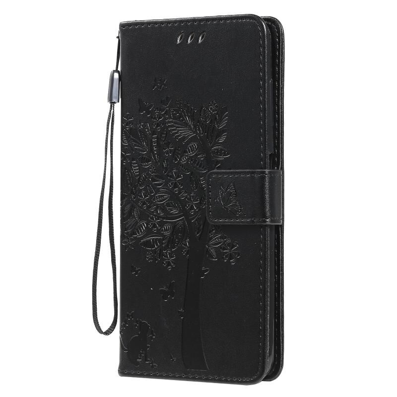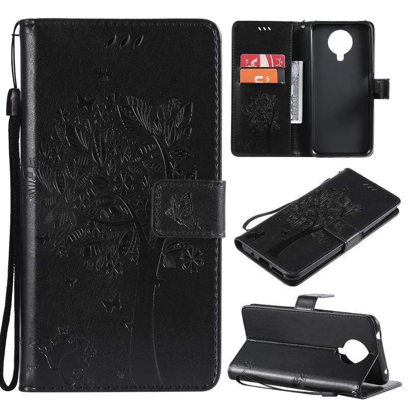 Για το Nokia G10 Tree & Cat Pattern Pressed Printing Horizontal Flip PU Leather Case με θήκη & υποδοχές για κάρτες & πορτοφόλι & κορδόνι (μαύρο)