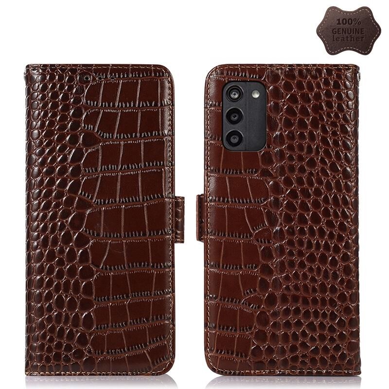 Θήκη τηλεφώνου από γνήσιο δέρμα αγελάδας, επάνω στρώση, για Nokia G100 Crocodile (Μαύρο)